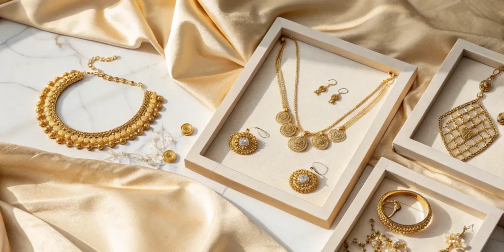 Created for the woman who embodies elegance, Svarnika by Taj captures the enduring allure of gold through masterful craftsmanship and classic design. Each piece in this collection reflects a graceful harmony of tradition and modernity, where opulence meets subtlety. Inspired by timeless silhouettes, Svarnika celebrates feminine strength with refined sophistication, offering jewelry that is both empowering and effortlessly exquisite.