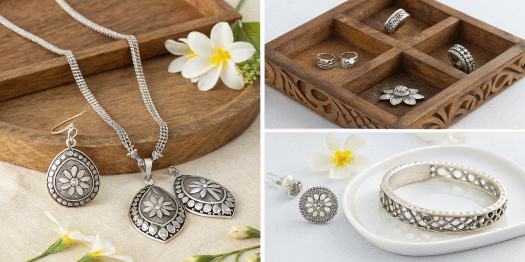 ChaandiRaag is a lyrical celebration of silver, where every piece tells a story of grace, depth, and quiet beauty. Handcrafted with care, the collection captures the rhythm of tradition infused with the soul of contemporary design. Elegant and emotive, each creation is made for those who cherish subtlety, embrace simplicity, and carry strength with effortless style.